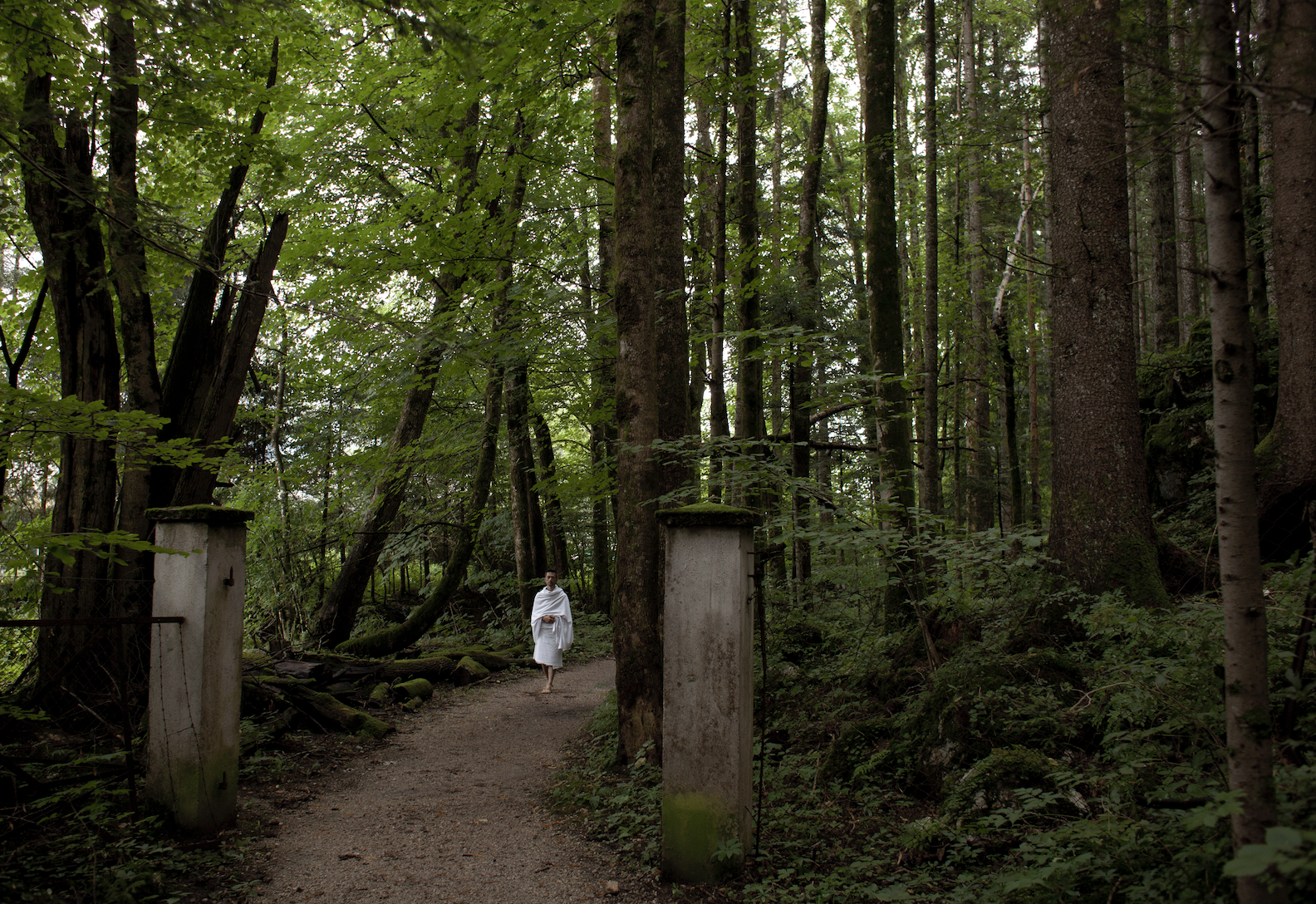 Le Sacre du printemps, dance/performance Zheng Bo seeks to cultivate eco-sensitive relationships between human beings and beings of the plant world. The first iteration of Le Sacre du printemps were a serach to find forms of movement for a kind of eco-sexual dance, where humans like pine trees was considered dancing bodies. It posed a great challange even to imagine what such dance would look like;The pine trees are more than 20 meters tall and between 60 and 300 years old, much bigger and older than the human dancers.