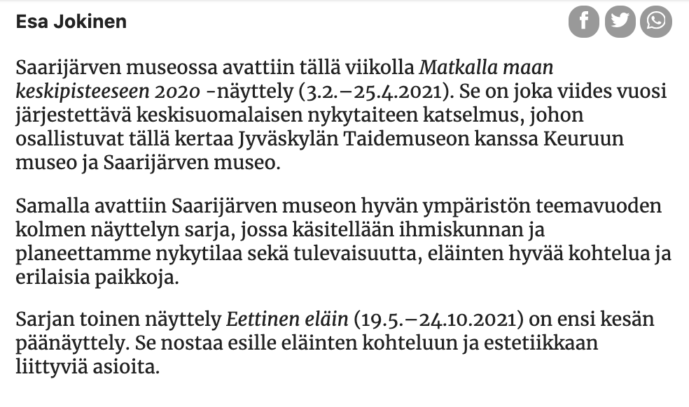 I Pipsa Lonkas strömmade premiär av «Fyra dagar av närhet» speglas människor och djur i varandra, som i ett flytande tillstånd upplöser skiljelinjer.[1]