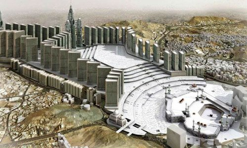 Abraj Al Bait-tårnene i Mekka, ferdigstilles i 2020. Arkitektfirmaet Dar Al Handasah har tegnet anlegget. Konstruksjonsarbeidet blir utført av Saudi Binladin Group.